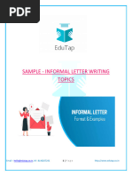 2. Informal letters: Letters written to a relative, parents, brother or