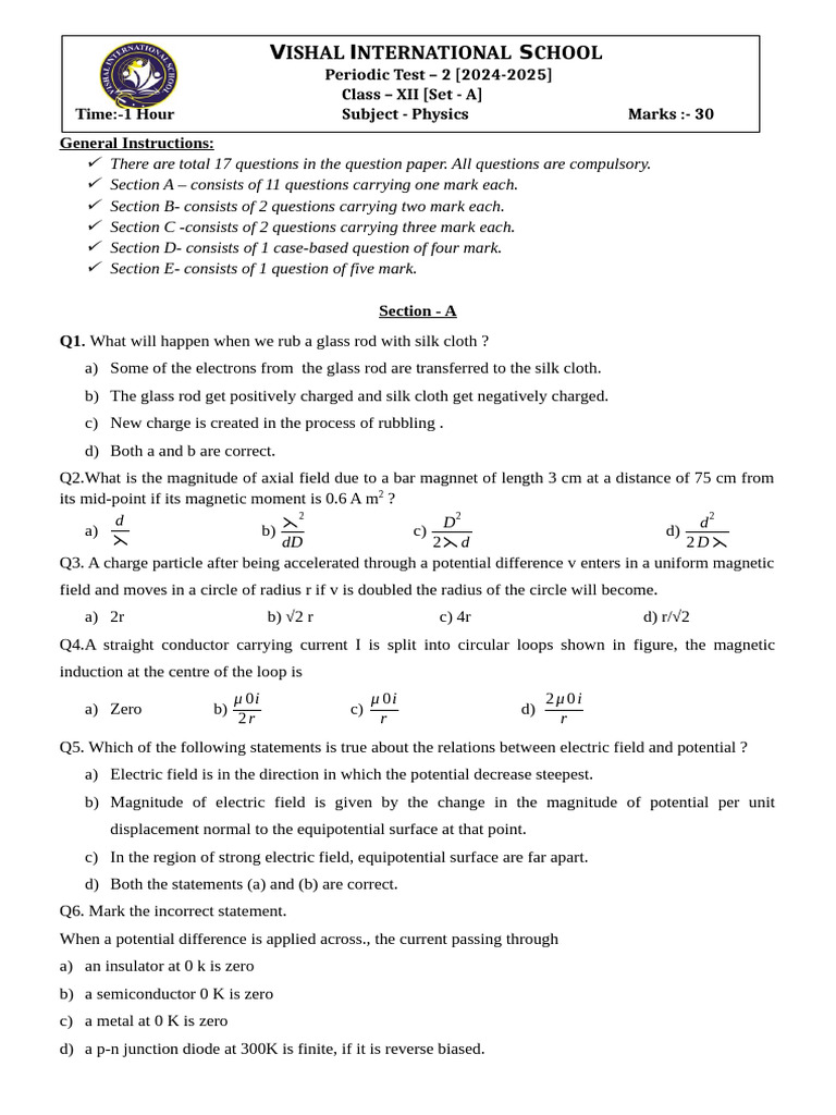Time:-1 Hour Subject - Physics Marks :- 30
