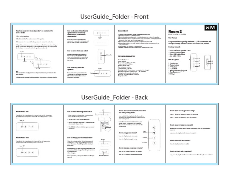 speaker for 5 seconds. It will unpair and 4. Please get it repaired only by professional maintenance staff. Congratulations on getting the Roam 2 !! This user manual will