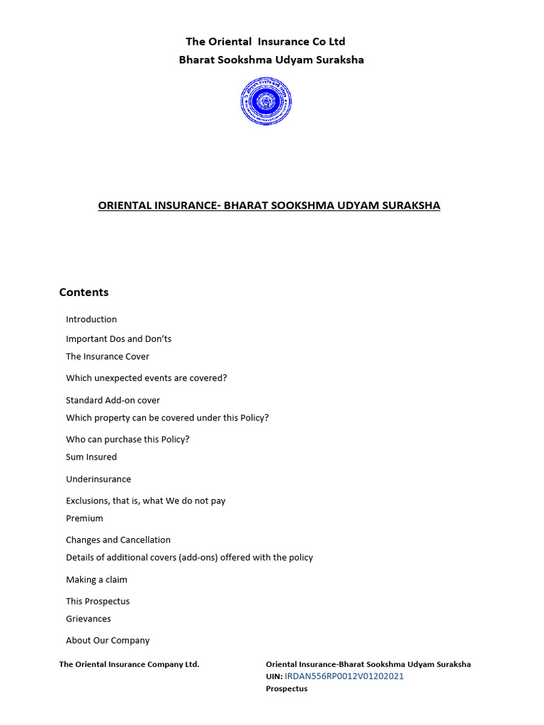 The Oriental Insurance Company Ltd. Oriental Insurance-Bharat Sookshma Udyam Suraksha