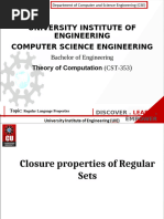 Proof: By DeMorgan’s law, L1 ∩ L2 = L1 ∪ L2, a regular language.