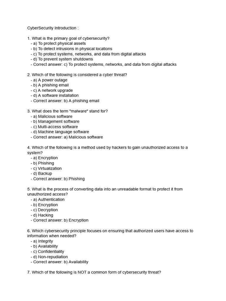 - Correct answer: c) To protect systems, networks, and data from digital attacks