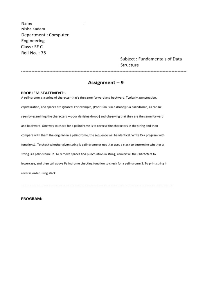 functions1. To check whether given string is palindrome or not that uses a stack to determine whether a