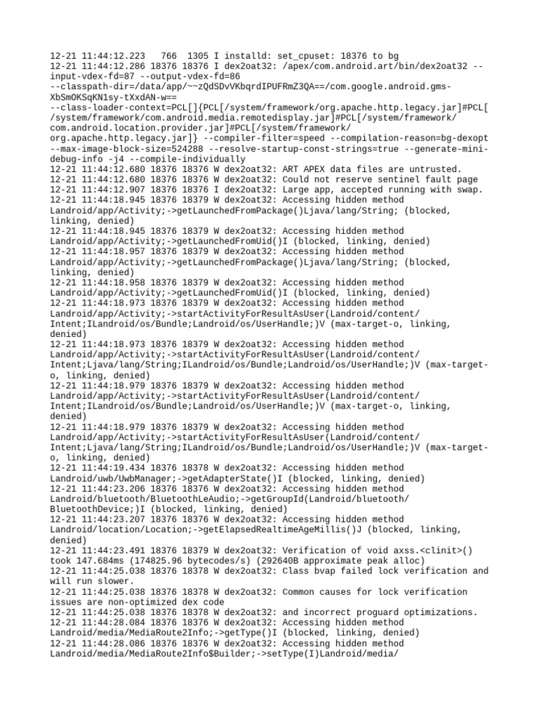 12-21 11:44:12.286 18376 18376 I dex2oat32: /apex/com.android.art/bin/dex2oat32 --