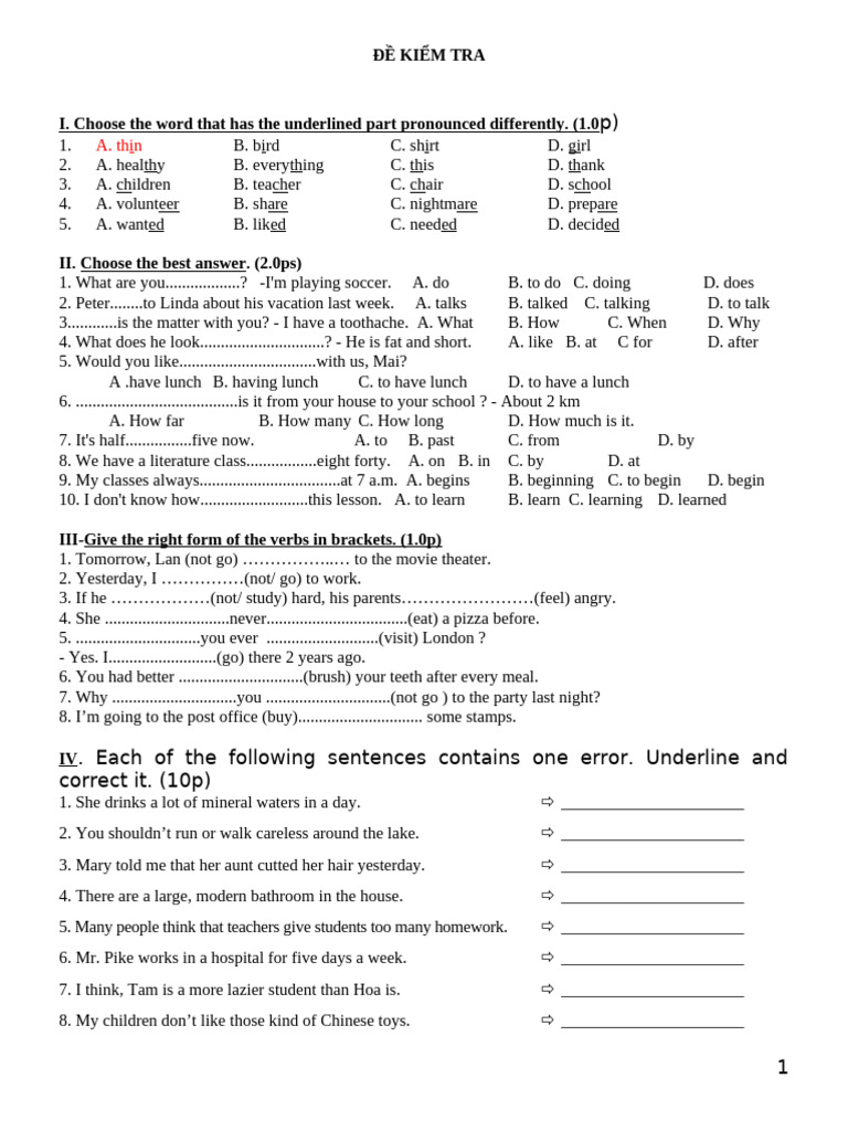 ĐỀ KIỂM TRA