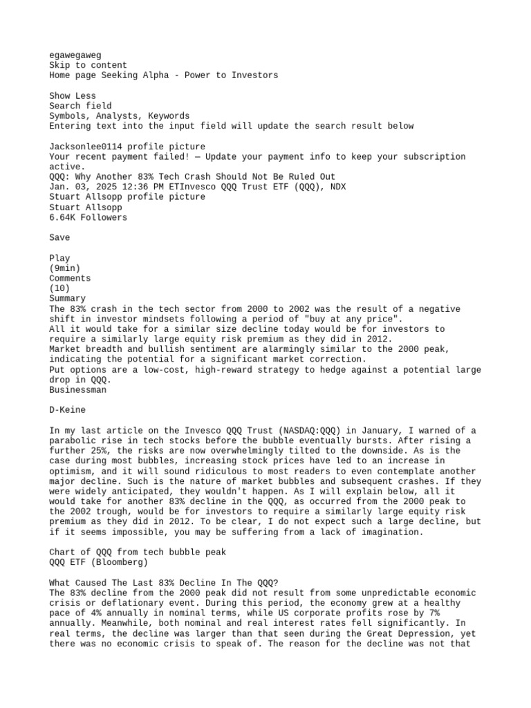 QQQ: Why Another 83% Tech Crash Should Not Be Ruled Out