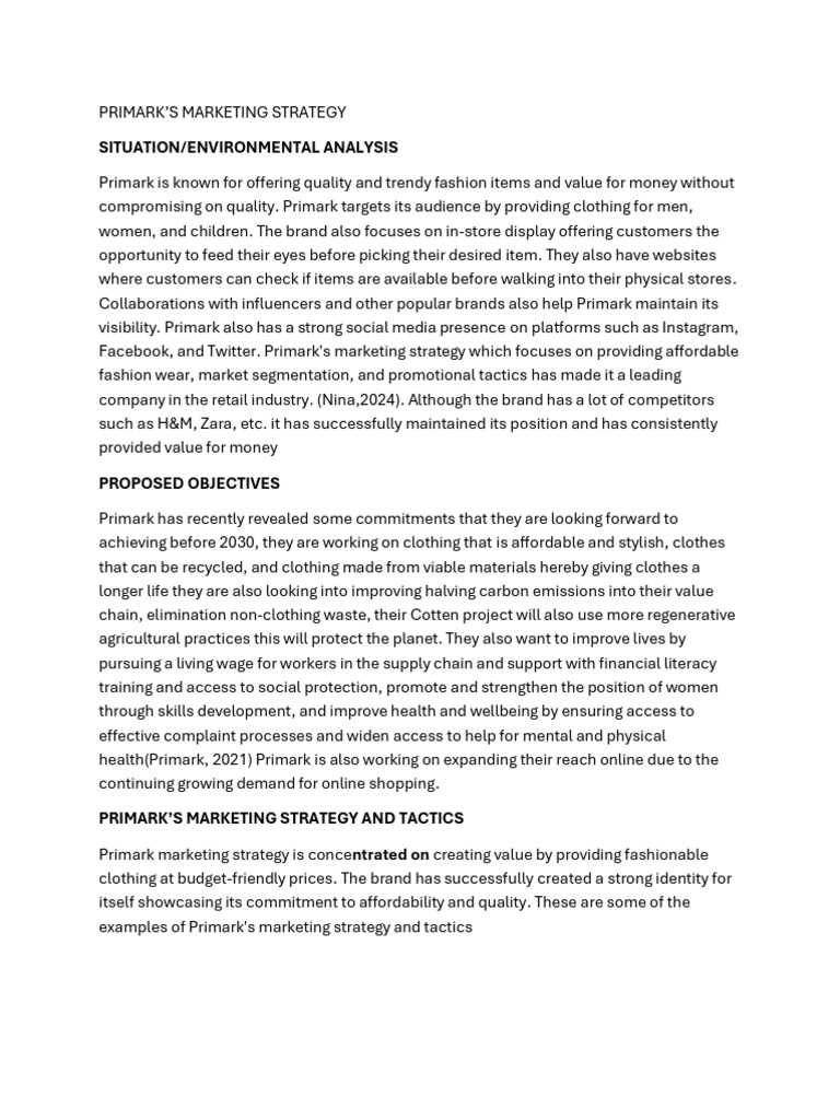 Sheridan, N. (2024). Primark marketing strategy 2024: A case study retrieved from: