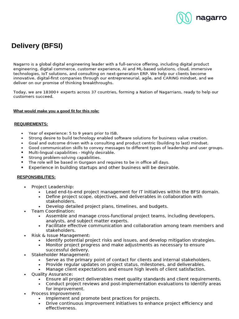 Lead end-to-end project management for IT initiatives within the BFSI domain.