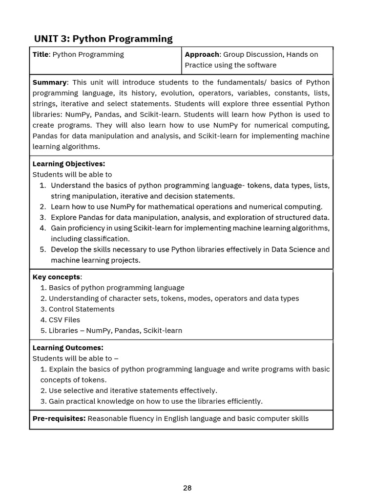 libraries: NumPy, Pandas, and Scikit-learn. Students will learn how Python is used to