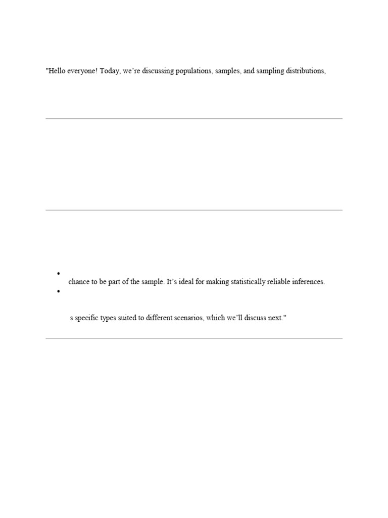 "Hello everyone! Today, we’re discussing populations, samples, and sampling distributions,