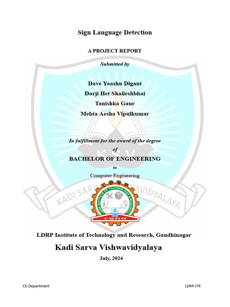This is to certify that the Project Work entitled “Sign Langauge Detection” has been carried out