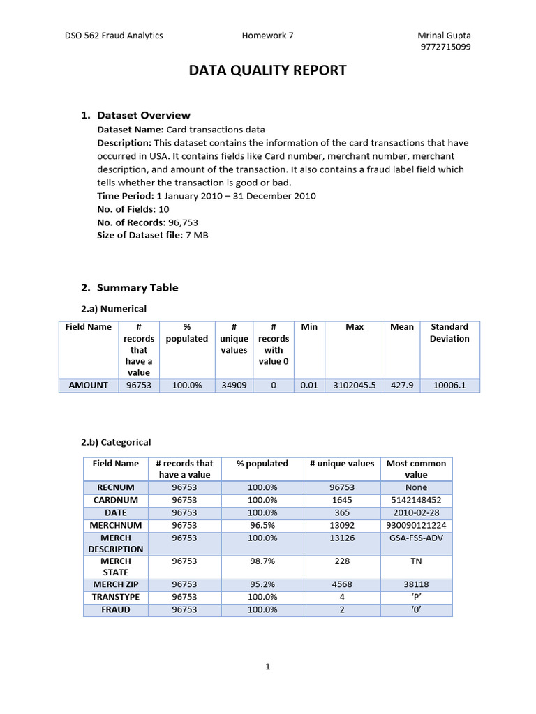 DSO 562 Fraud Analytics Homework 7 Mrinal Gupta