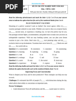 Read the following passage and mark the letter A, B, C, or D to indicate the correct answer to each of