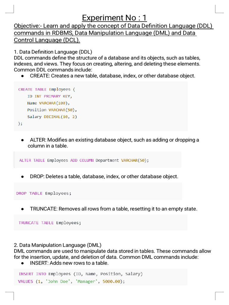 1. Data Definition Language (DDL)