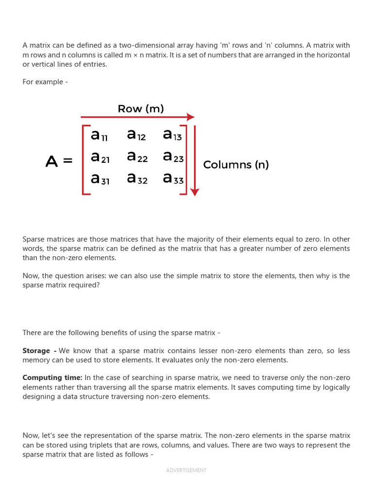 and Sparse Matrix. After that, we saw why the sparse matrix is useful, and at last, we have discussed