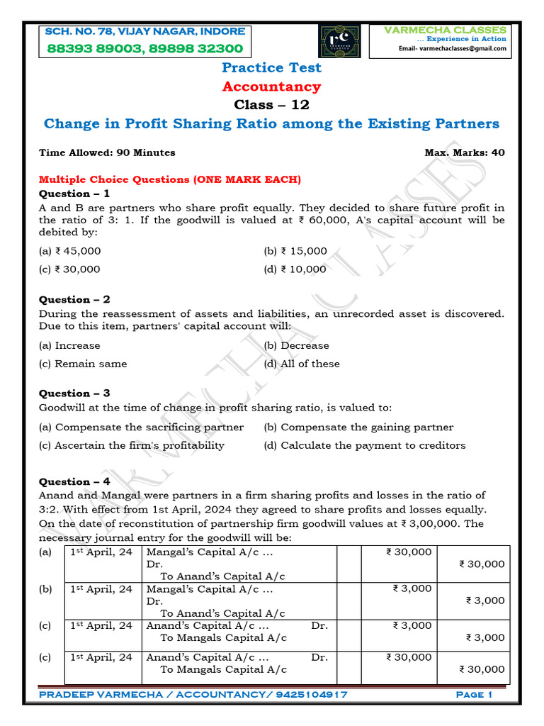 PRADEEP VARMECHA / ACCOUNTANCY/ 9425104917 Page 1
