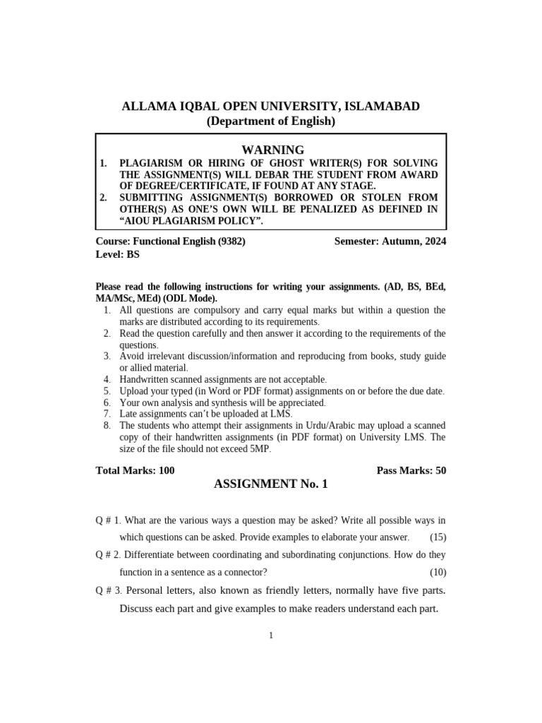 Please read the following instructions for writing your assignments. (AD, BS, BEd,