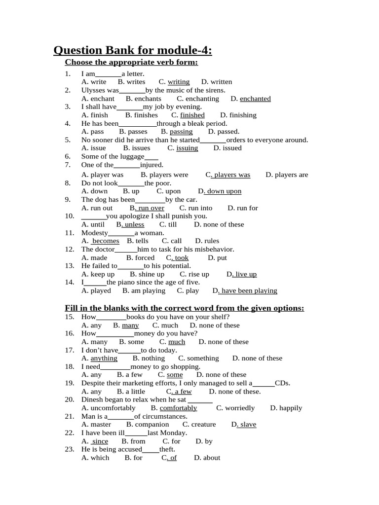 Question Bank for module-4: