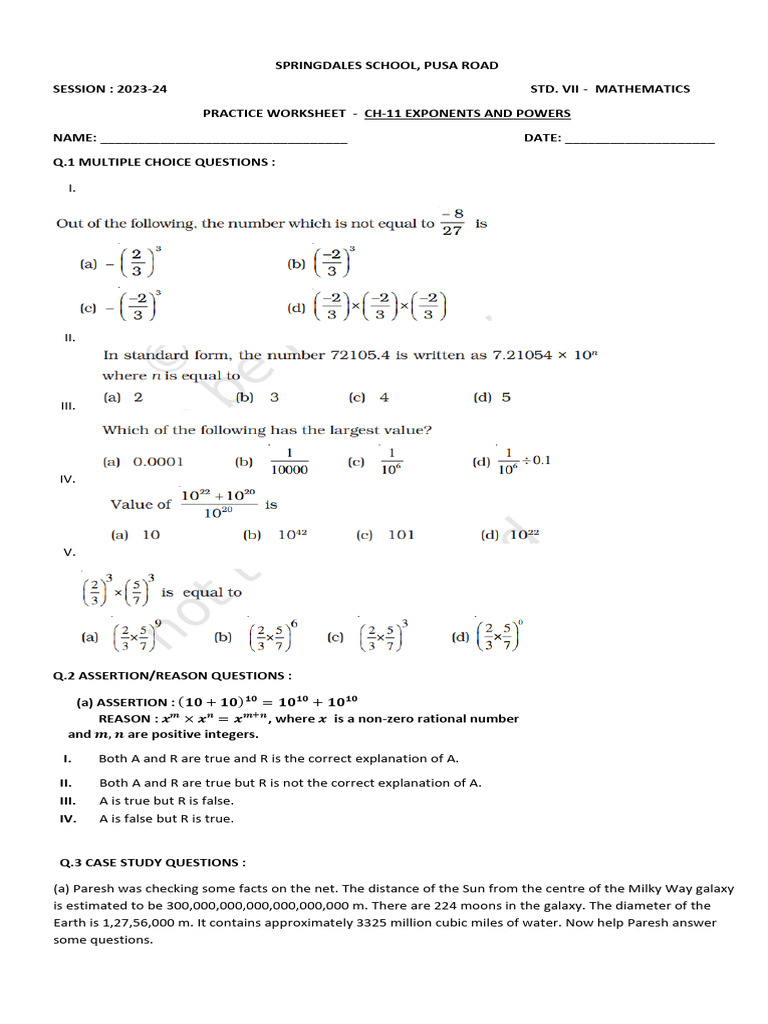 PRACTICE WORKSHEET - CH-11 EXPONENTS AND POWERS