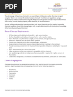 o Segregation: Separate areas for storing incompatible chemicals (e.g., acids and bases).