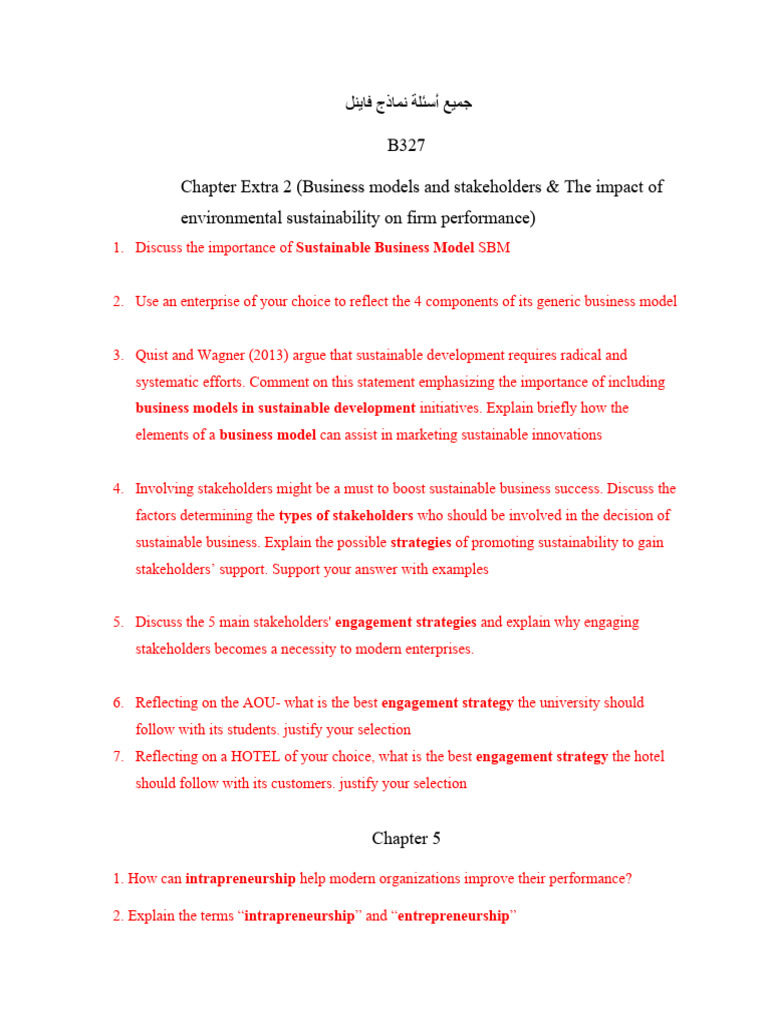 Chapter Extra 2 (Business models and stakeholders & The impact of