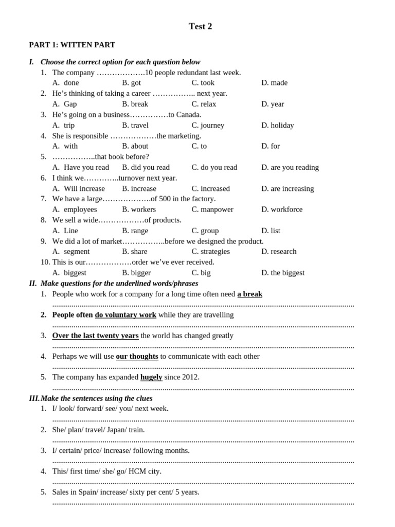 II. Make questions for the underlined words/phrases