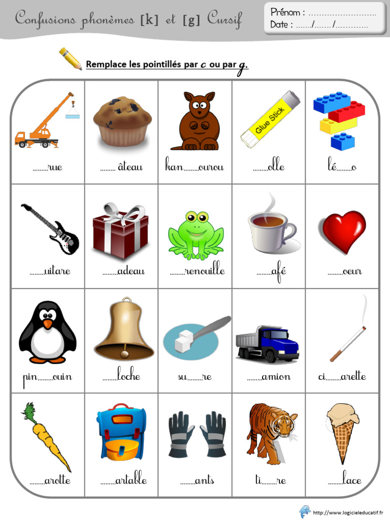 Confusions phonèmes [k] et [g] Cursif : ......./...…. /..………..