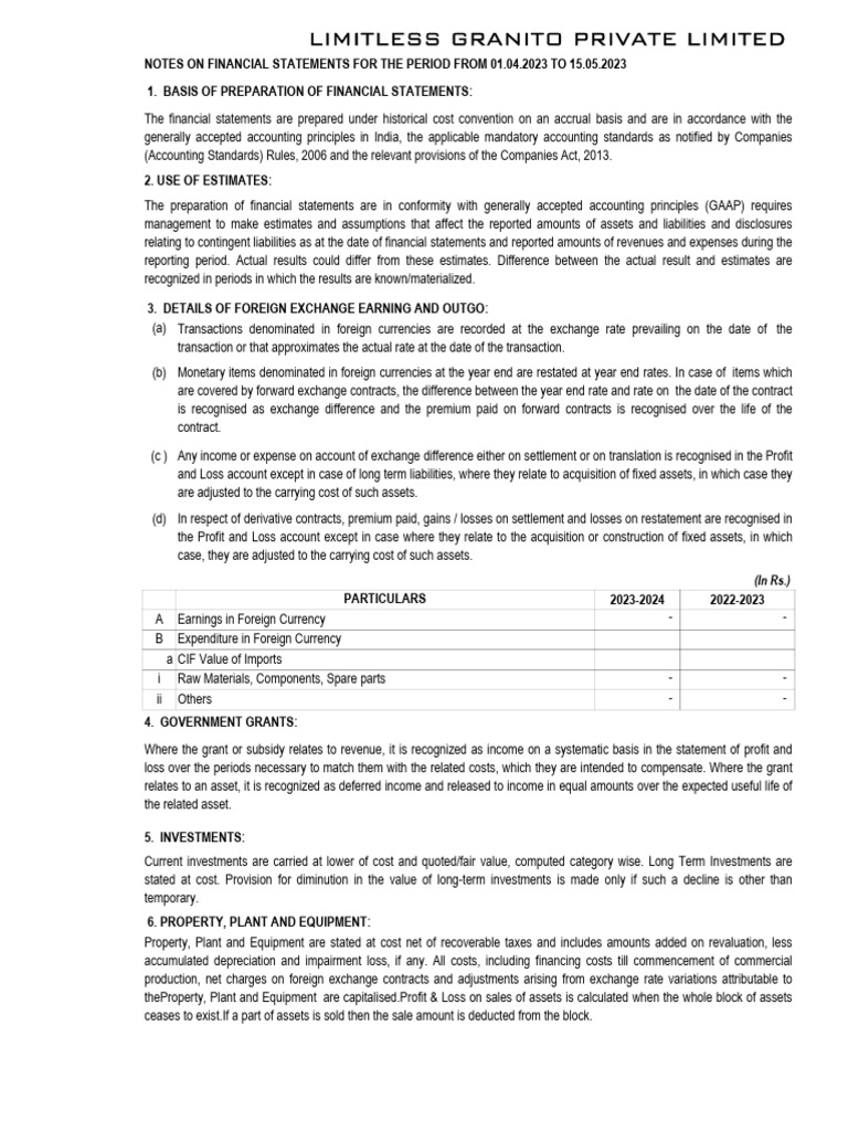 NOTES ON FINANCIAL STATEMENTS FOR THE PERIOD FROM 01.04.2023 TO 15.05.2023