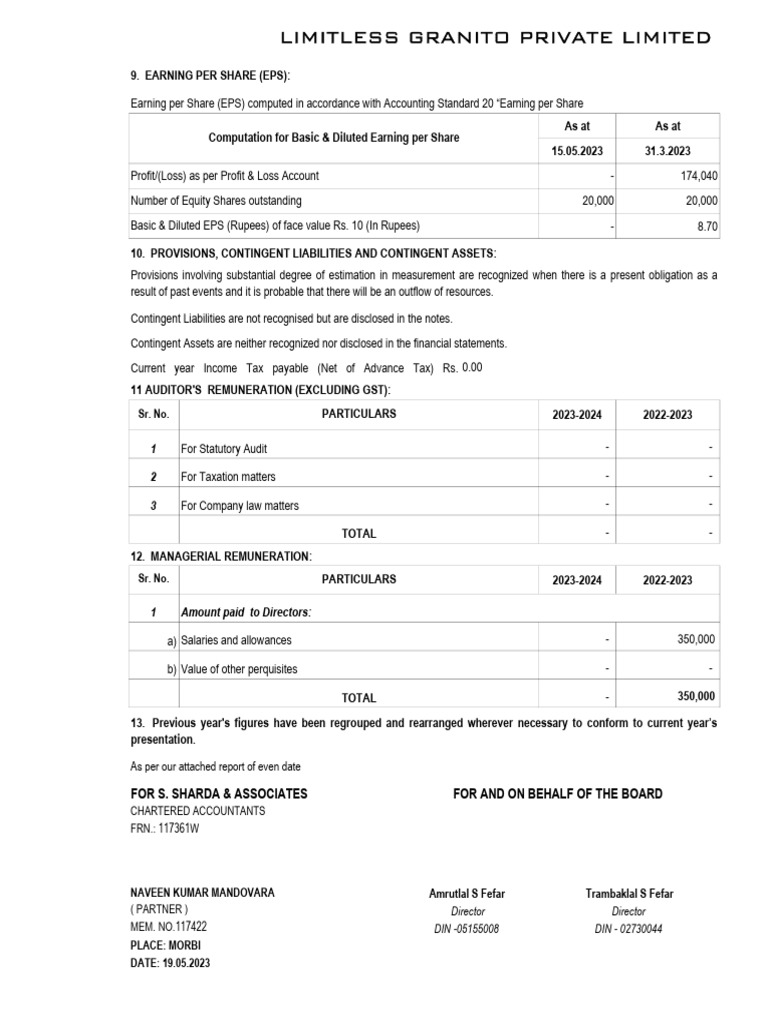 Sr. No. PARTICULARS 2023-2024 2022-2023