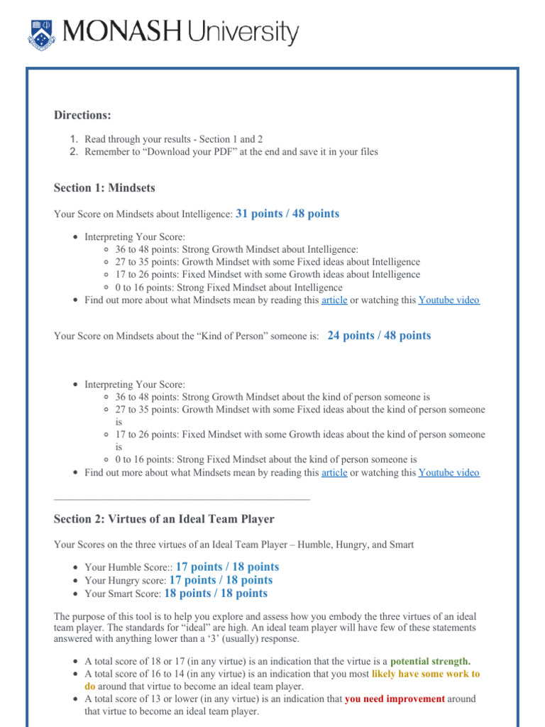 36 to 48 points: Strong Growth Mindset about the kind of person someone is