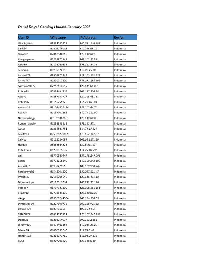 User ID Whatsapp IP Addreas Region