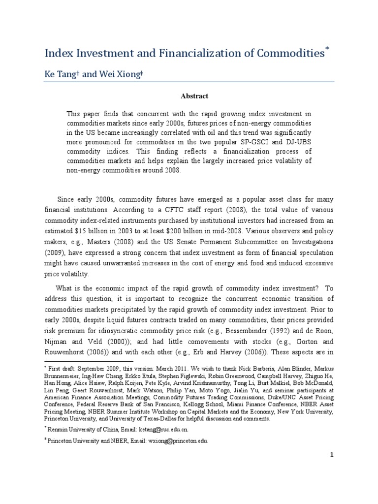 commodities markets precipitated by the rapid growth of commodity index investment. Prior to