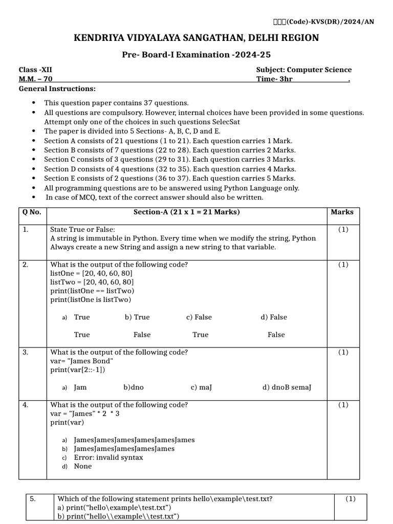 कोड(Code)-KVS(DR)/2024/AN