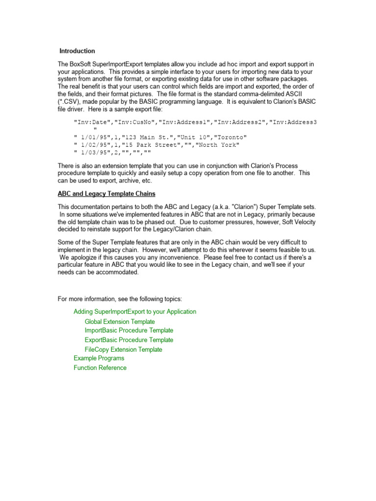 The BoxSoft SuperImportExport templates allow you include ad hoc import and export support in