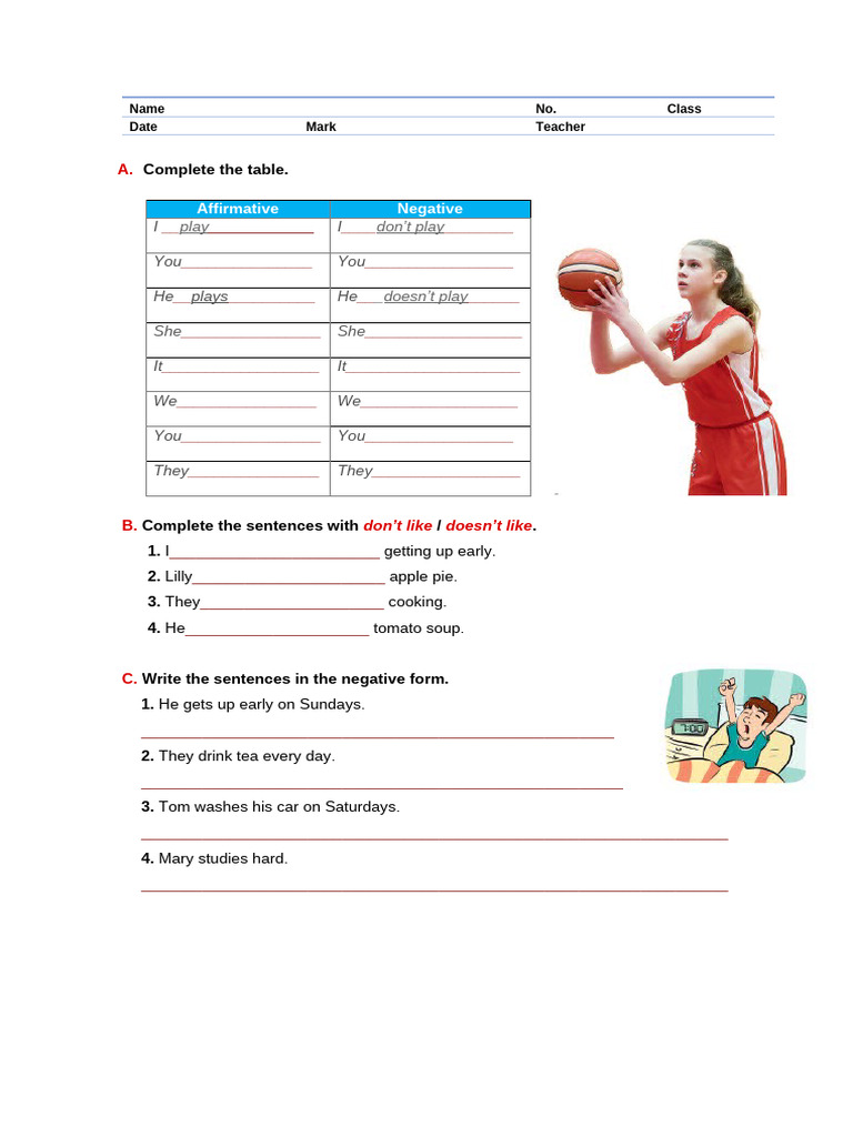 C. Write the sentences in the negative form.