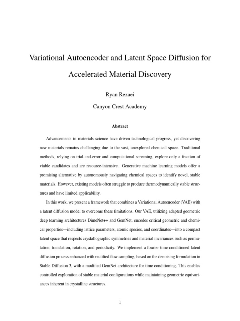 The integration of VAE and latent space diffusion shows promise in accelerating material discov-