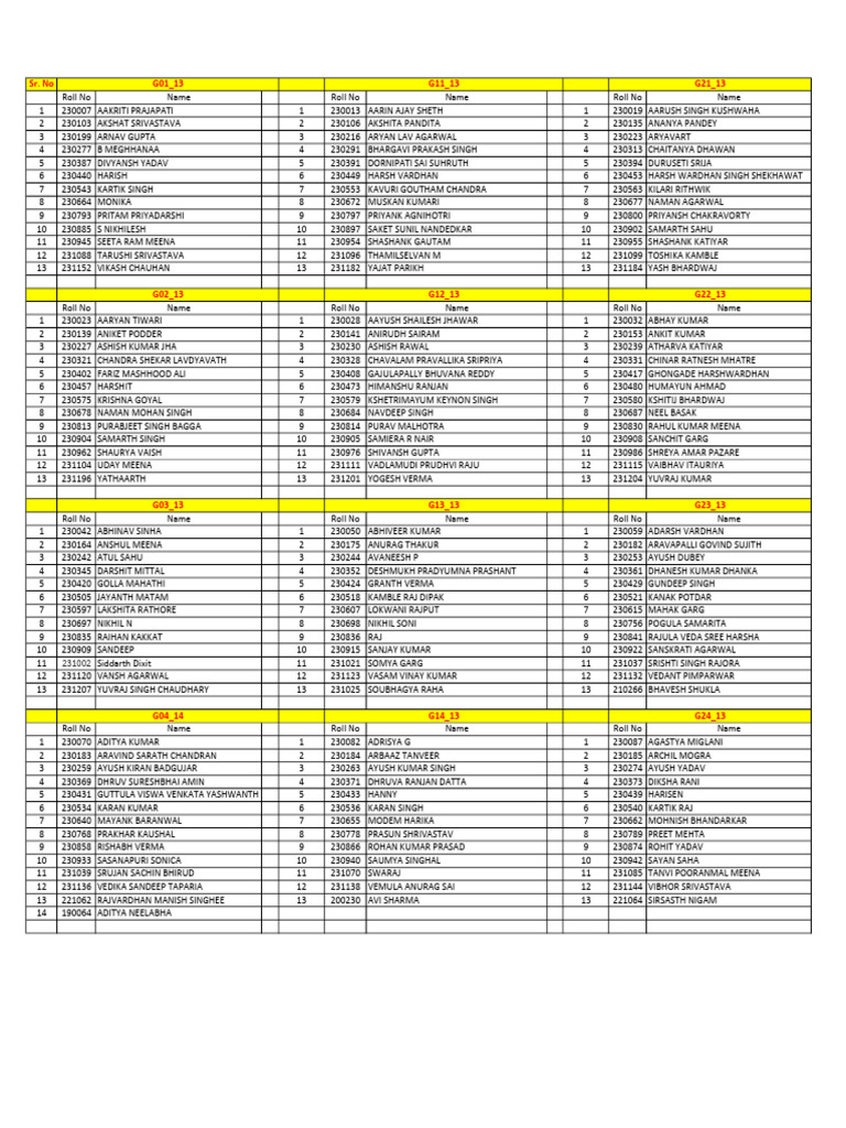 1 230042 ABHINAV SINHA 1 230050 ABHIVEER KUMAR 1 230059 ADARSH VARDHAN
