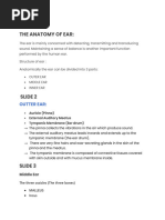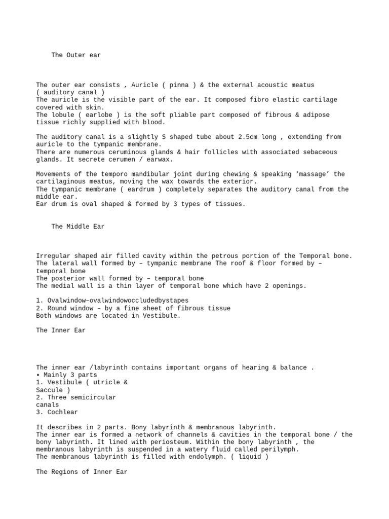 canal, and tympanic membrane. The middle ear contains the ossicles and is connected