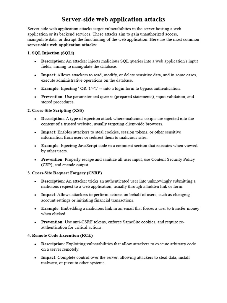 Server-side web application attacks target vulnerabilities in the server hosting a web