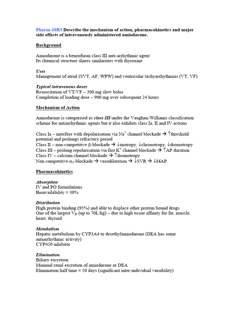 Pharm-10B3 Describe the mechanism of action, pharmacokinetics and major