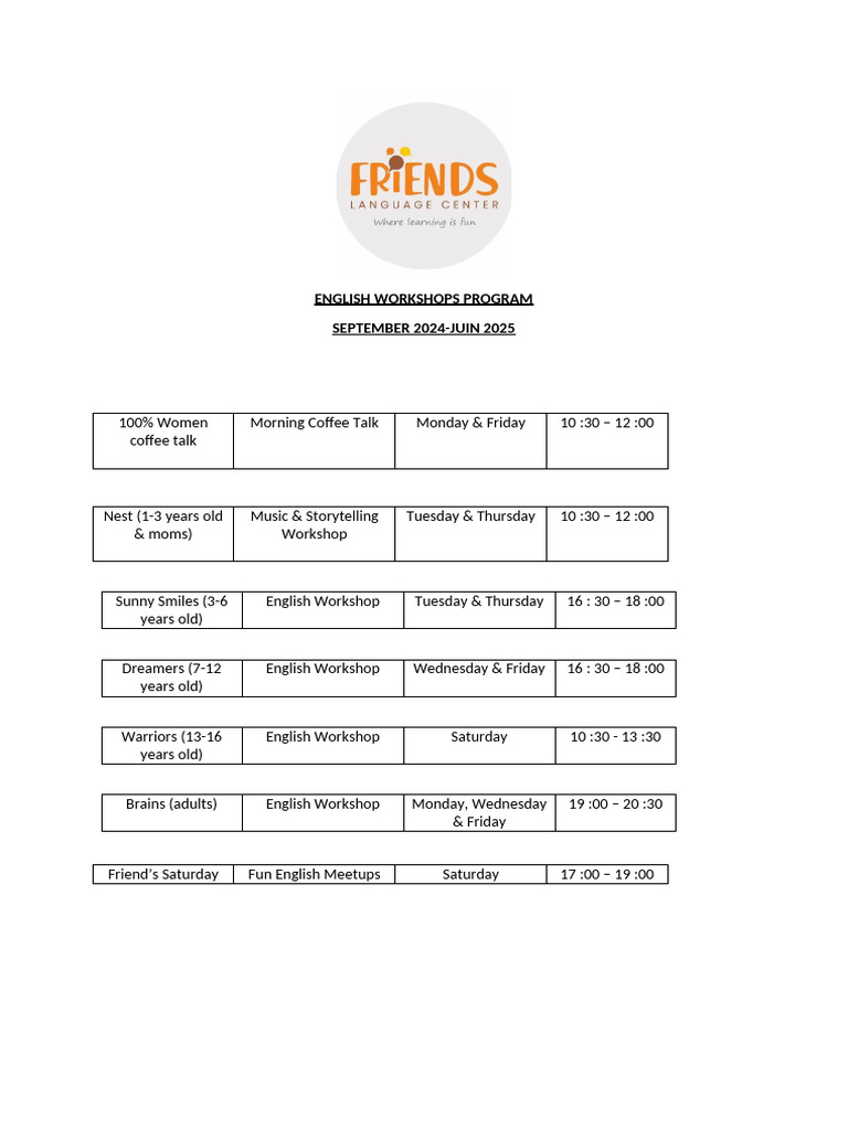 ENGLISH WORKSHOPS PROGRAM