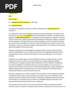 It is our pleasure to cofim our offer of employmnt to you as a Hospitality Agent for. In this