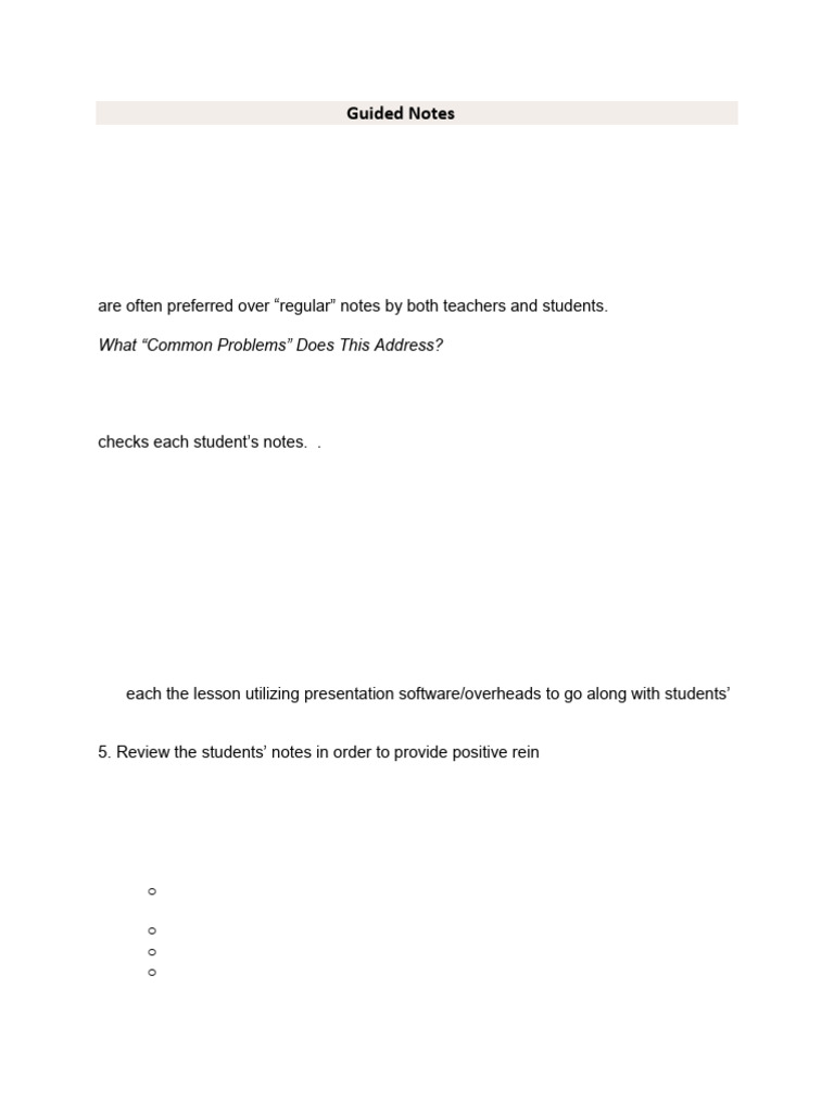Guided Notes. Include prompts and/or questions in lessons if it is necessary or aids in