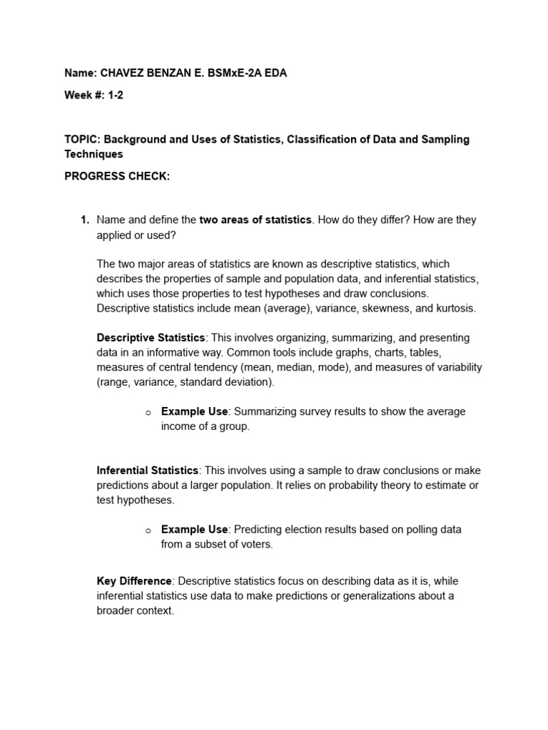 TOPIC: Background and Uses of Statistics, Classification of Data and Sampling