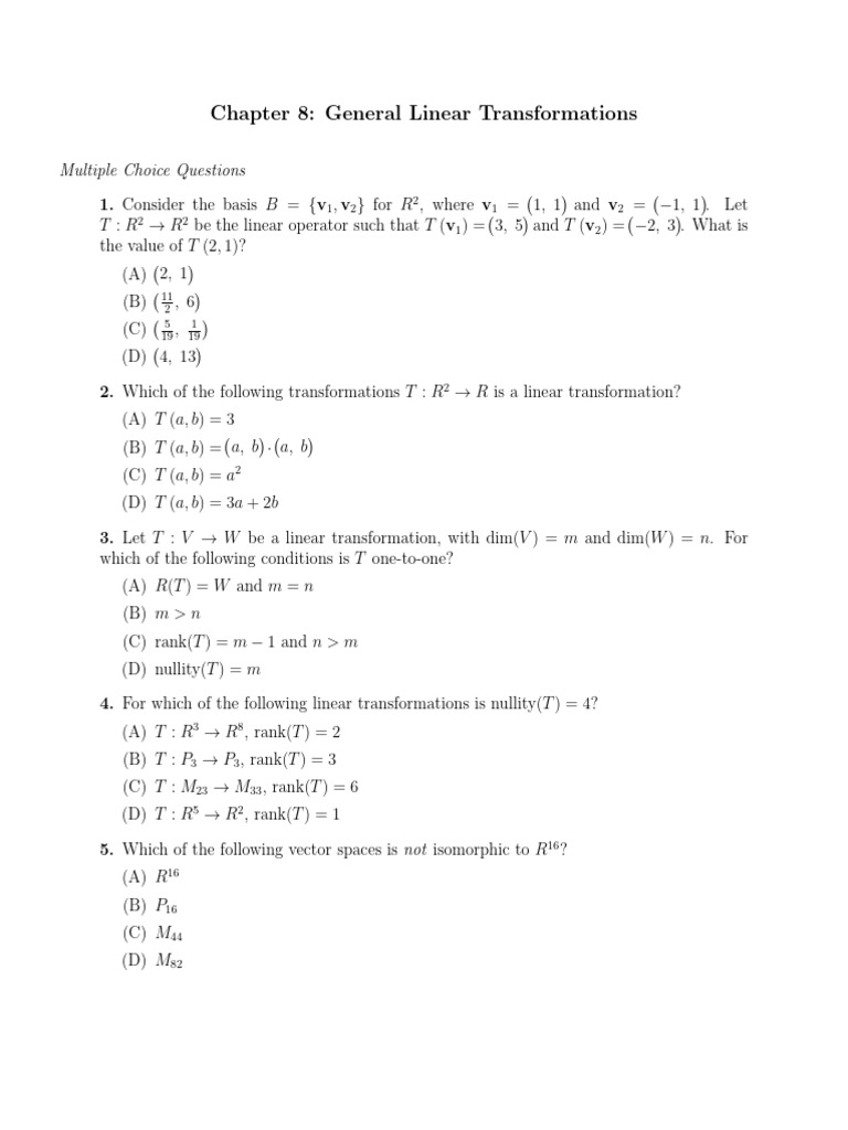 1. Let T : M22 → R be defined as T = a − d. Show that T is a linear transfor-
