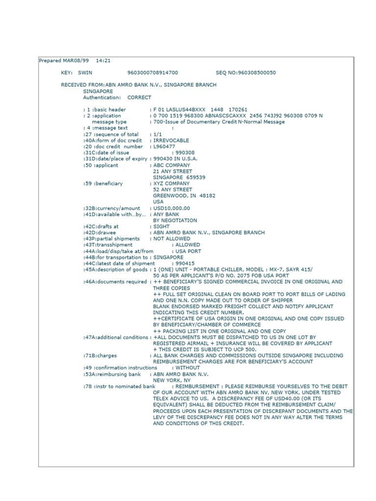 message type : 700-Issue of Documentary Credit N-Normal Message