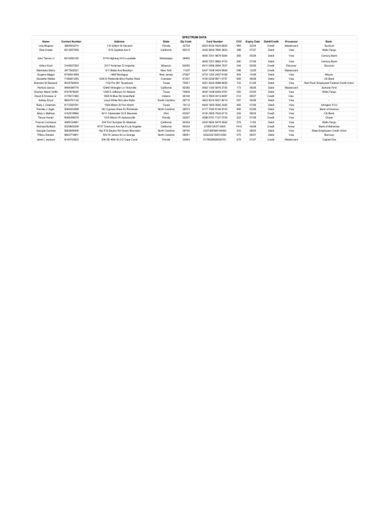 Name Contact Number Address State Zip Code Card Number CVV Expiry Date Debit/Credit Processor Bank