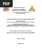 In partial fulfillment of the requirements for the course HRM 112/HRM 113: Supervised Work experience in the restaurant phase of the industry