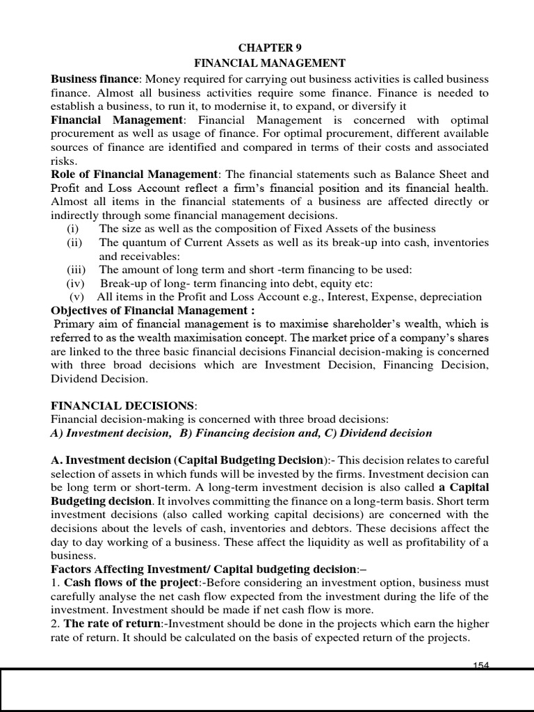 A) Investment decision, B) Financing decision and, C) Dividend decision