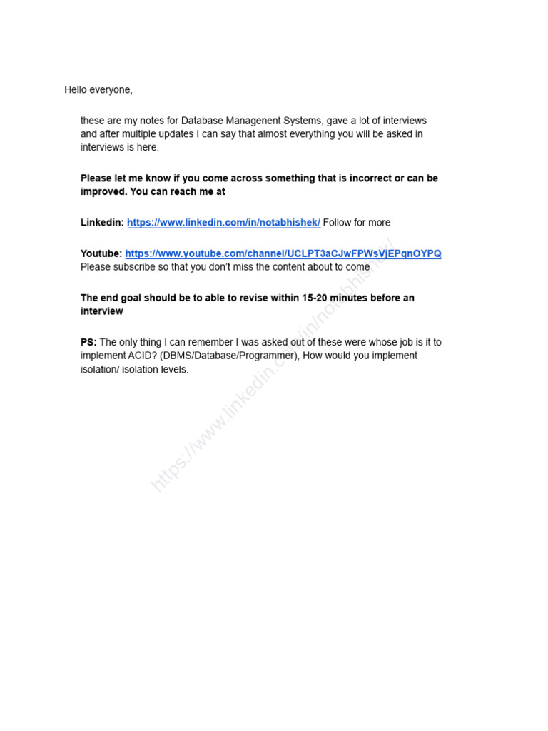 Abhishek Tiwari's DBMS Interview Notes